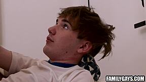 sleazy stepdad spies twink's cock then bareback claims it