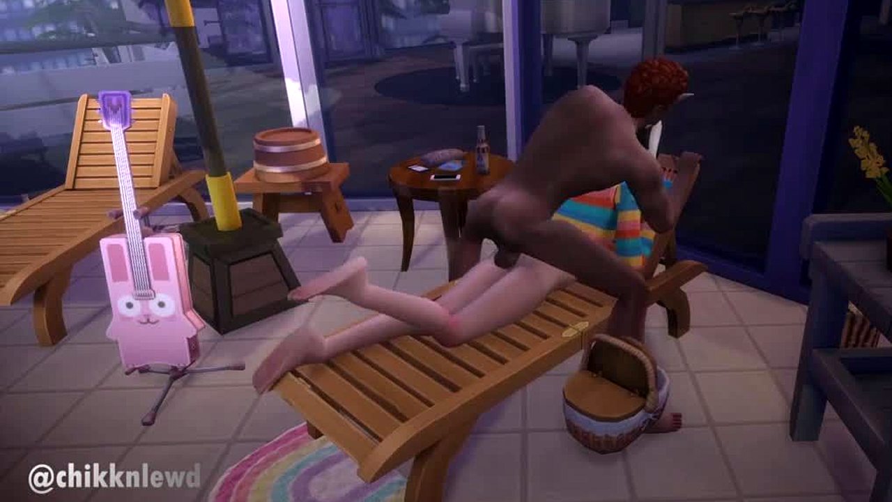 Statný Sims 4 gay trojka stříkají tvrdě u plážové vily